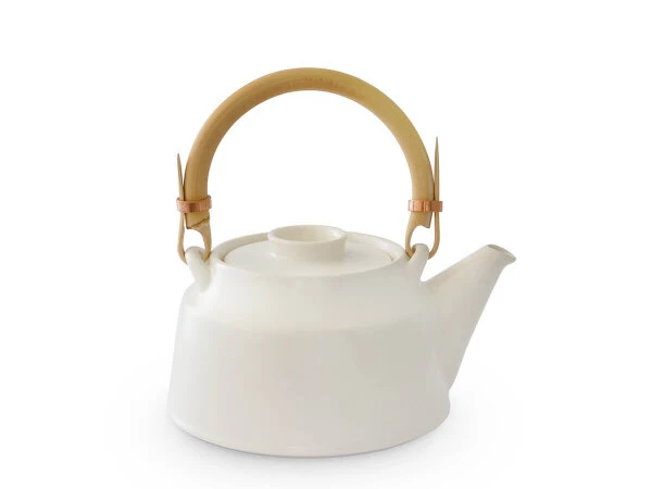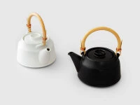 Teekanne von Tatsumi Kato (ceramic japan), traditionell von Hand gefertigt, in modernem Design. Die Manufaktur hat ihren Sitz in Seto, Präfektur Aichi. Dort, wo traditionell Töpferware hergestellt wird, da diese Region mit einem besonders hochwertigen Töpferkitt ausgestattet ist. Es ist das einzige Töpferzentrum in Japan, das eine Glasur verwendet, die seit der Kamakura-Zeit, seit über 1000 Jahre, eingesetzt wird. Die vielfach prämierte Manufaktur zeichnet sich durch ihre bewusst enge Zusammenarbeit von modernen Designern mit traditionellen Kunsthandwerkern aus. Die Ergebnisse sind Produkte, die die Welt noch nicht gesehen hat. Neue Formen von hoher Ästetik aber auch höchstem Gebrauchswert und bester Qualität. Die Unterschiede zu preiswerter Massen- und Industrieware ist nicht nur sichtbar sondern – so Tee-Kenner – auch im Geschmackserlebnis deutlich erfahrbar.