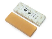 Wasserstein der Manufaktur Miyagoshi Seito aus Kyoto. Hergestellt im Vitrified-Verfahren (Verglasung) mit sehr hochwertigem Schleifmittel Aluminiumoxid und Zirkonoxid und keramischem Hochtemperatur-Bindemittel. Die mittlere Partikelgröße liegt bei ca. 11,5µ, der Schleifstein ist eher hart, sehr widerstandsfähig, nutzt sich wenig ab. Mit der Körnung 1000 liegt der Schleifstein im oberen Bereich der mittleren Körnungen und ist für den Vorschliff, besonders für gut gepflegte Messer, sehr gut geeignet. Die Wassersteine von Miyagoshi sind sowohl für harte Karbonstähle wie auch für Edelstähle bestens verwendbar.
