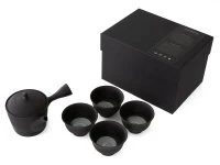 Japanisches Teeservice Teppachu Kurokusube, 3-teilig, Banko Yaki