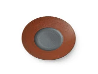 Porzellan Teller von Koubei-Gama, der Keramik Manufaktur aus Gifu. Die Teller sind in traditioneller Weise von Hand gefertigt, bemalt und wurden in einem nach historischen Vorgaben 1977 erbauten Ofen gebrannt. Die Oberfläche ist leicht aufgeraut, was den Tellern eine ungewöhnlich schöne Ästhetik im Detail verleiht. Für hartes Essbesteck ist diese Porzellanware zu schade, man sollte Essstäbchen oder Holzbesteck verwenden. Ein besonderer Reiz der Serie Homura besteht in den Kombinationsmöglichkeiten mit den anderen einfarbigen und zweifarbigen Tellern der Serie. Diesen Teller gibt es mit den Durchmessern 20, 24 und 28 cm.